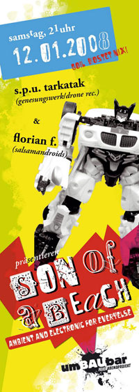 Meet us! Sa. 12.01.2008 | Umbaubar | oldenburg | Son of a Beach – Ambient & Electronic for everyelse | Avec S.P.U. Tarkatak und mir. Eintritt frei!
