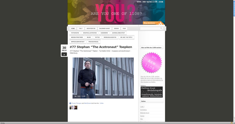 Header design we-are1108.comvon ffDezember 27, 2010Dezember 30, 2010This is my header design for the project www.we-are1108.com. Related post: we are 1108 & we dance 2312